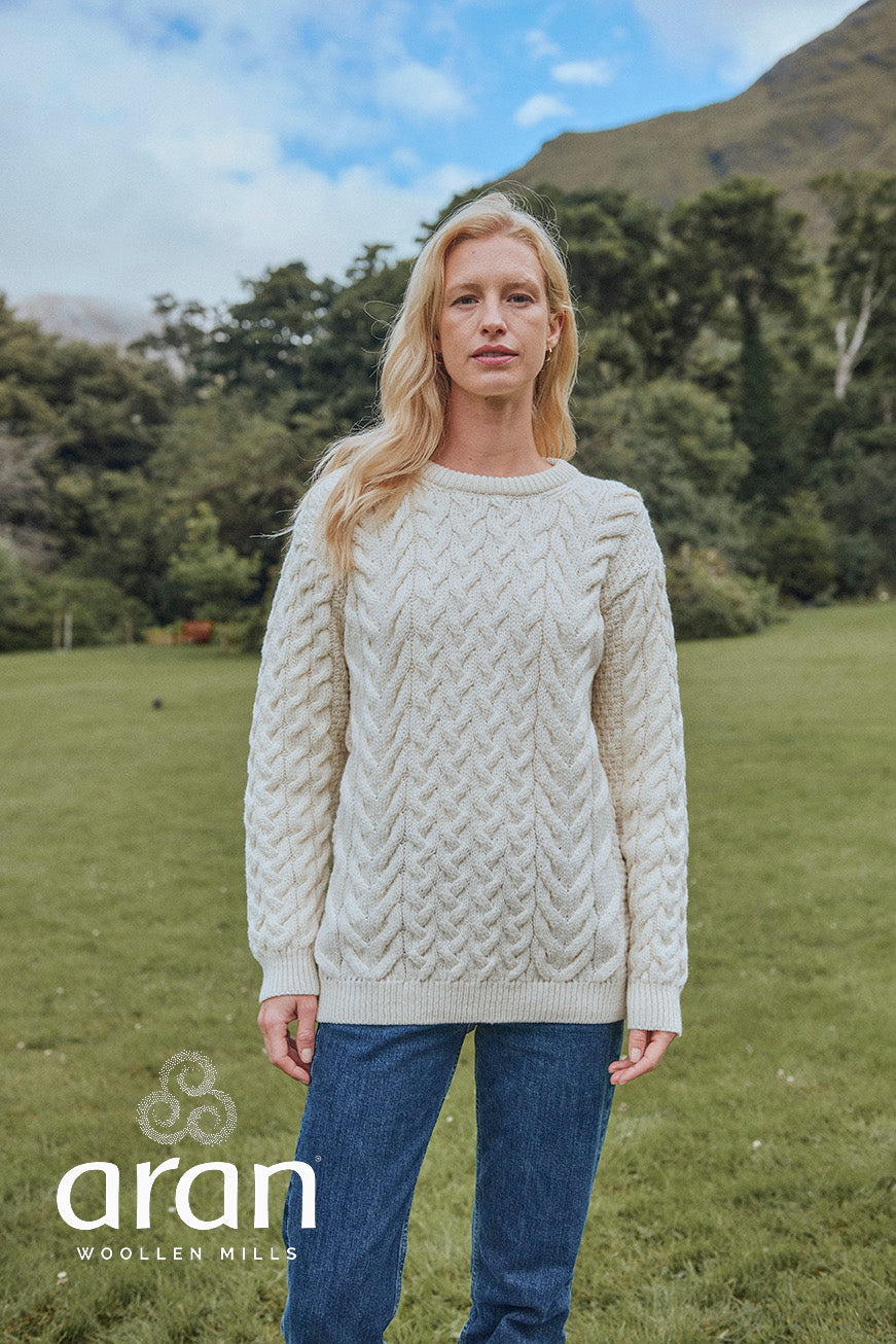 Irish Knitwear and Sweaters, Aran Jumpers and Irish wool sweaters made in Ireland. Brands such as Aran Mills and Murphy of Ireland.